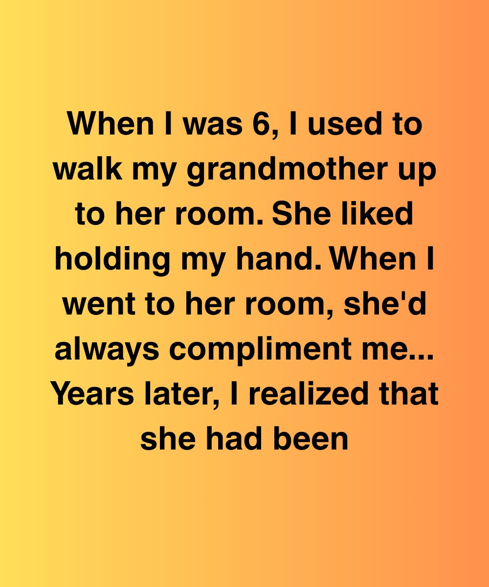When I was 6, I used to walk my grandmother up to her room. She liked holding my hand. When I went to her room, she’d always compliment me…