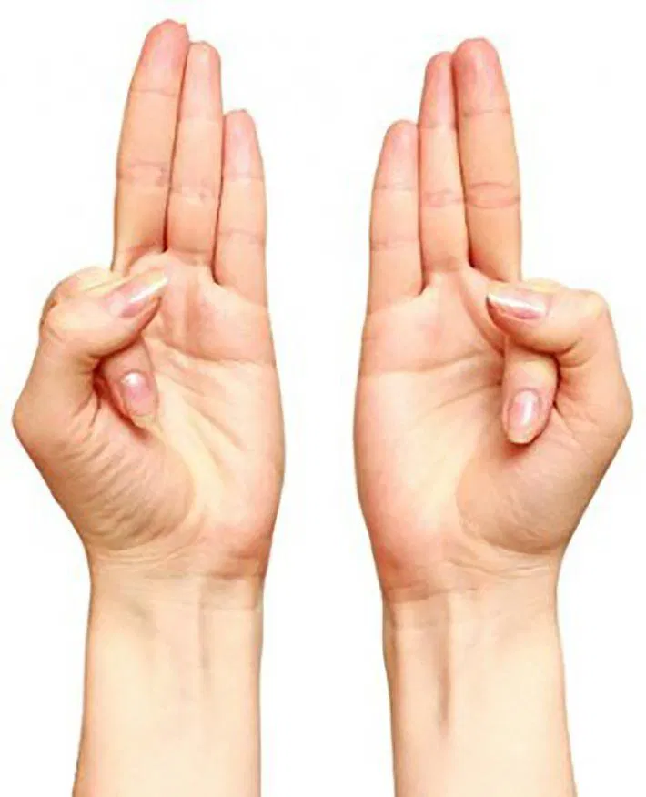 - Touch these two fingers with the tip of your thumb.